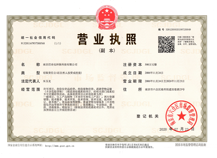 南京巴詩克環(huán)保科技有限公司,座落在江蘇省南京市化學(xué)工業(yè)園區(qū)紅山精細(xì)化工園(六合區(qū)),交通便利,工業(yè)發(fā)達(dá),環(huán)境優(yōu)美。公司注冊資金500萬元,占地面積20多畝。項目總投資5000萬元,建成廠房及附屬設(shè)施9000平方米,新購置設(shè)備224臺套。項目全部建成投產(chǎn)后可實現(xiàn)年銷售收入6500萬元、利稅6···
